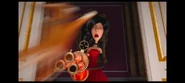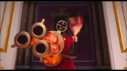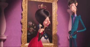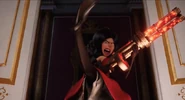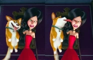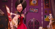 Во время её коронации платье Скарлетт Оверкилл было в основном красным сверху и темно-коричнево-серым снизу. У вершины был высокий, похожий на перья черный воротник с золотой шнуровкой, круглые рукава, шнуровка на спине и покрытый золотыми узорами. На юбке также была золотая шнуровка. У этого также было две красных полосы, и ряд красных роз, которые уменьшились, поскольку юбка опустилась. У «пояса» была черная роза спереди. Она также держала свое колье и носила красные локтевые перчатки с золотыми шнуровками на конце.