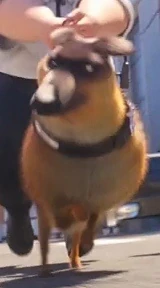 Его видят, как он и другая собака немецкая овчарка лают на миньонов и Мэлу и сотрудники полиции за ним бегают (хотя, один из них, держит поводок двумя руками). А когда они спрятаться в музыкальном конкурсе, один сотрудник полиции отпускает из поводка немецкую овчарку, чтобы закопаться около двери. Больше его не видели на протяжении всего мультфильма и в конце он абсолютно эпизодический.