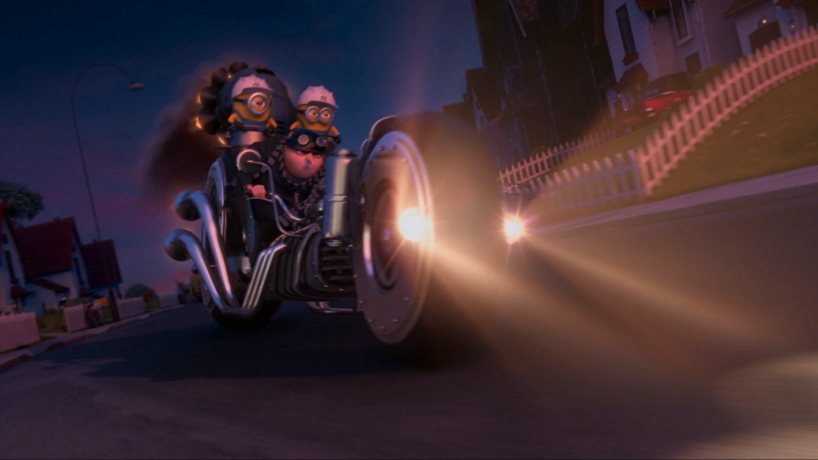 The motorcycle makes a cameo in Gru's Lab at night when Lucy comes to talk to Gru, who is sitting alone in the lab.