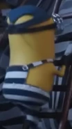 Jeffrey was first seen singing Papa Mama Loca Pipa. Then he was seen in prison. Later, when Buck was letting the minions into the flight, Jeffrey went up the ladder to get in and looked back at Todd. He was seen climbing up the ladder to get into the pile of minions. When Oliver knocks down Bill by accident, Jeffrey laughs at Bill. Then he was seen walking past minions sitting in the flight.