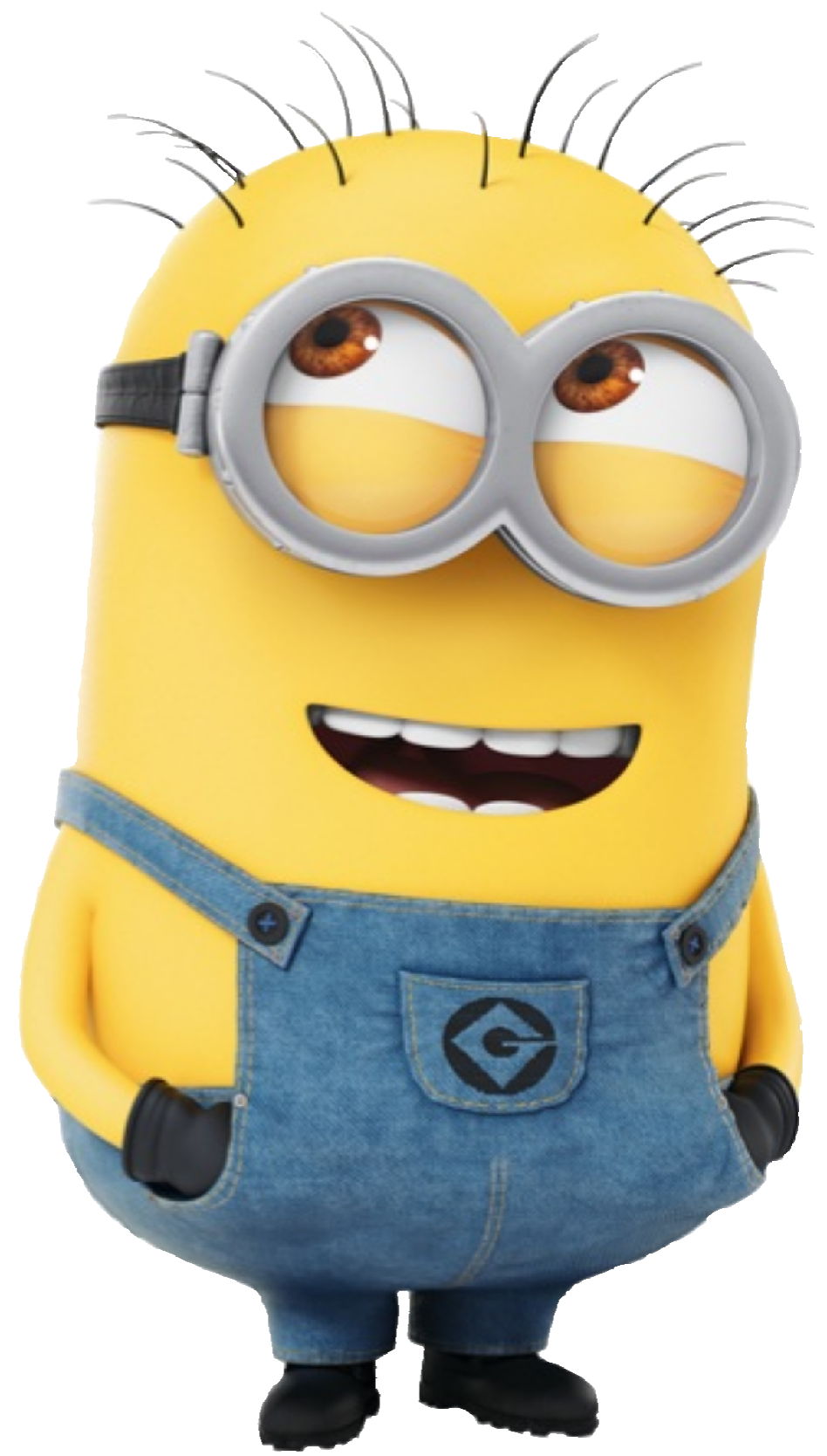 Jim is a medium-sized, two-eyed minion with spiky hair.
